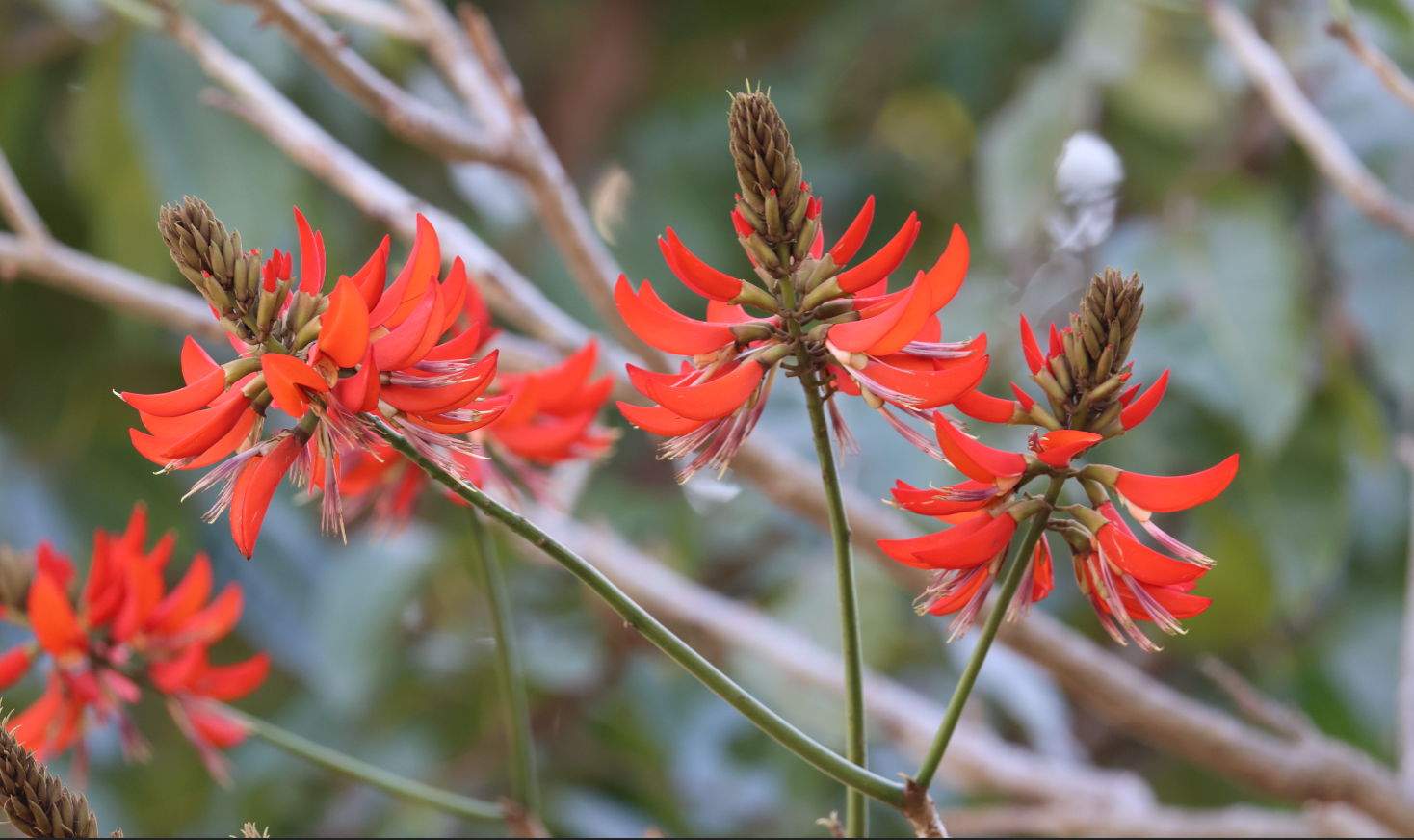 刺桐,豆科刺桐属落叶乔木,是中国南方地区最具代表性的观赏树种之一。刺桐可生长至20米,树皮灰褐色,树干与枝条上密布圆锥形皮刺,犹如披甲的武士,威武雄壮。