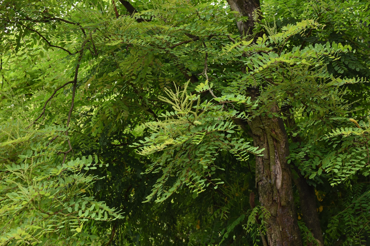海红豆在西大校园里主要分布于碧云湖东侧、西校园6B小广场附近,作为行道树栽培。